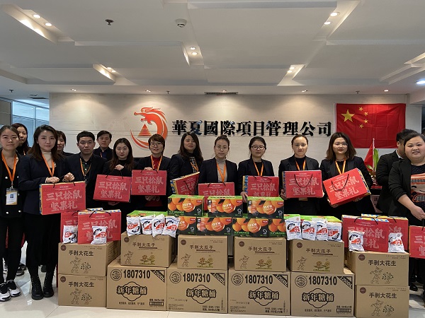 歡聲笑語辭舊歲,暖意融融迎新春。2020年春節即將到來,為表達對每一位員工的關愛,1月21日,華夏國際為全體員工發放了堅果禮盒、農夫山泉17.5°橙、手剝大瓜子、徐福記新年糖桶等7種春節福利品。
