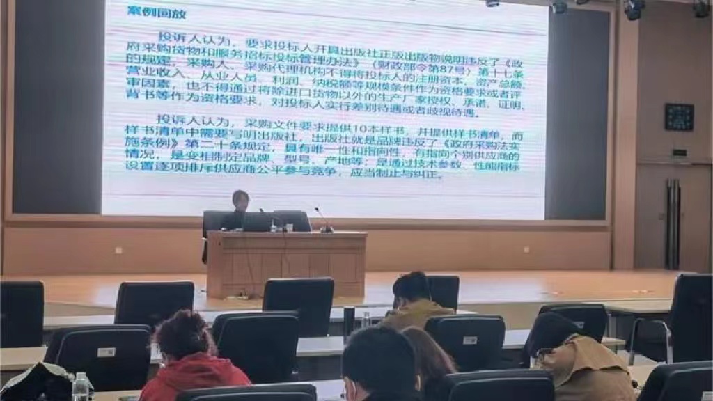 本次培訓(xùn)由我公司招標(biāo)部總監(jiān)康敏茹作為主講人。培訓(xùn)主要從:采購(gòu)人系統(tǒng)操作全流程、合同備案、質(zhì)疑和投訴易發(fā)生原因及處理、投標(biāo)中易串標(biāo)廢標(biāo)點(diǎn)等四個(gè)方面進(jìn)行了深入細(xì)致的講解,對(duì)大家遇到的難點(diǎn)問(wèn)題進(jìn)行了現(xiàn)場(chǎng)答疑。
